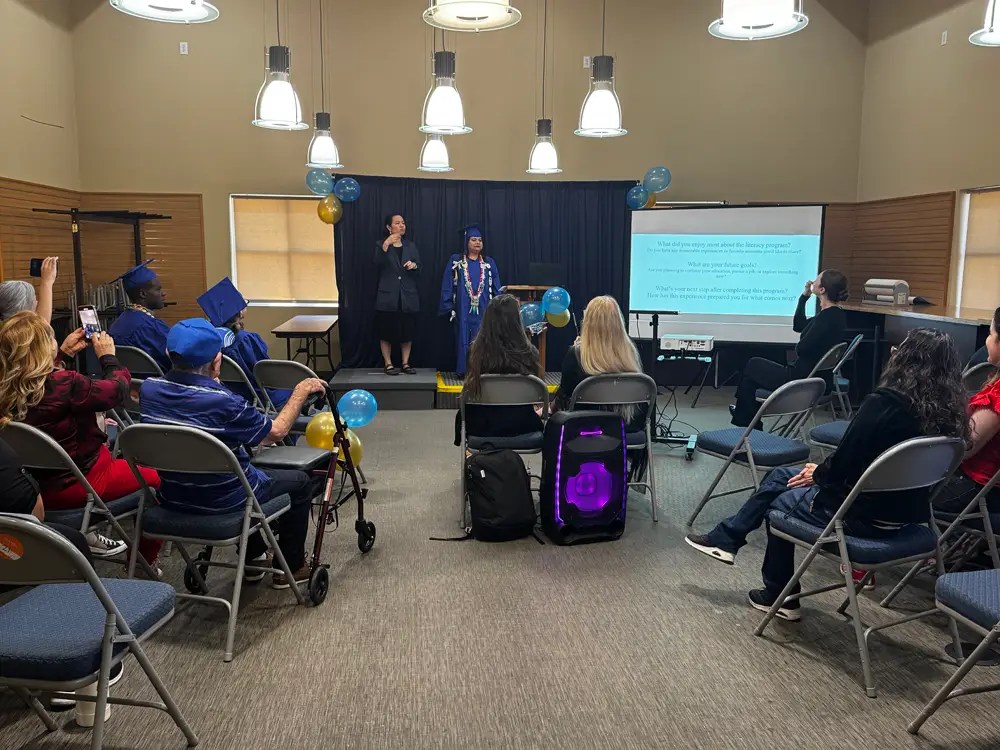 Let me share a brief story about how this program was founded. Thanks to Tom Galey, former Executive Director in 2000, the program has now been running for 25 years! The first student had failed college placement tests multiple times before coming here for help. His VR counselor, Karen Gamble, collaborated with Tom Galey to establish the literacy program.