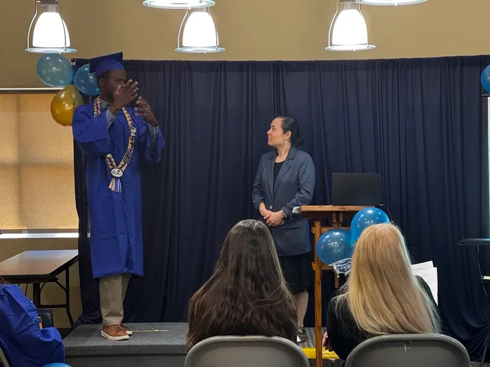He graduated from Carlsbad High School and completed the Adult Transition Program before enrolling in the Deaf Community Services Literacy Program. He has been attending the program for two years and two months and received his certificate of recognition.