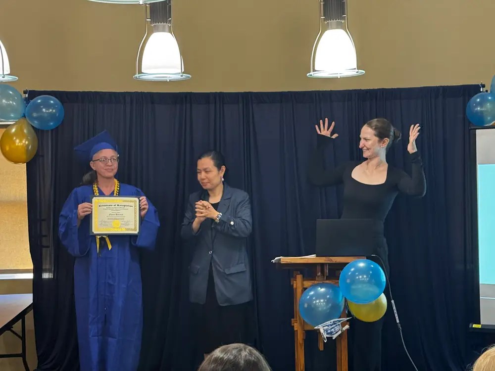She deserves recognition for completing the program. I remember when she had trouble turning on her computer. I couldn’t assist her in person at the time, so I sent her a DIY YouTube video. She managed to fix it on her own.